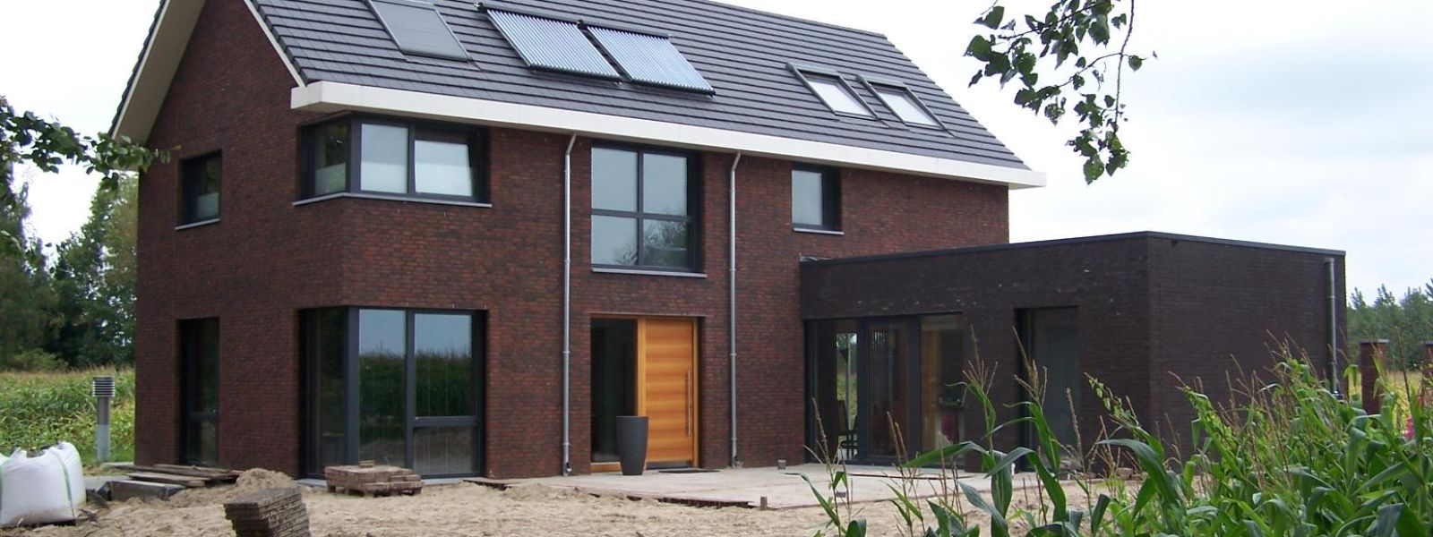 Passief huis incl zonneboiler, zonnepanelen, balansventilatie, horizontale aardwarmte, 3 voudig glas, 20 cm spouwmuurisolatie en 30 cm dakisolatie.