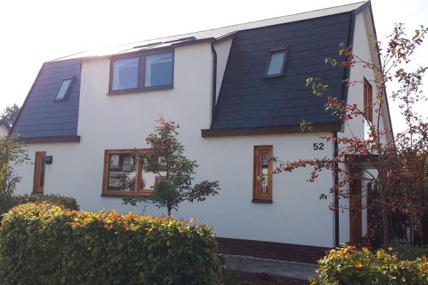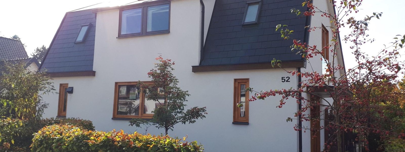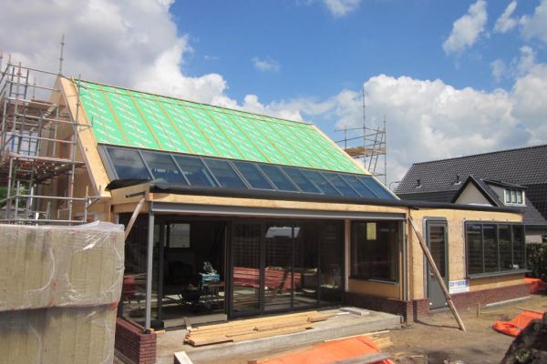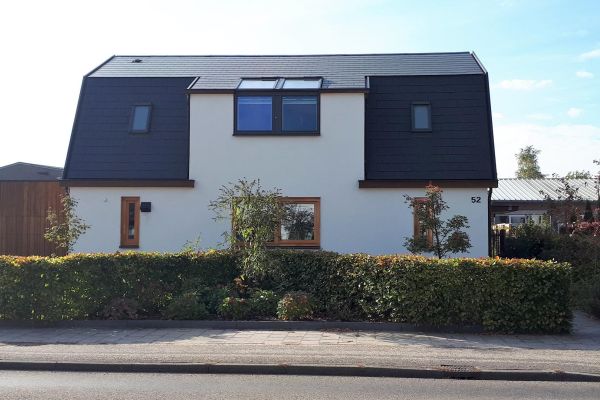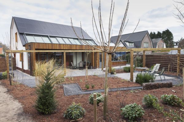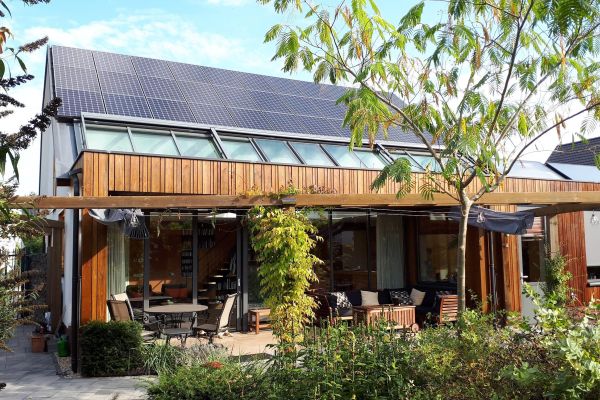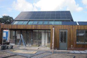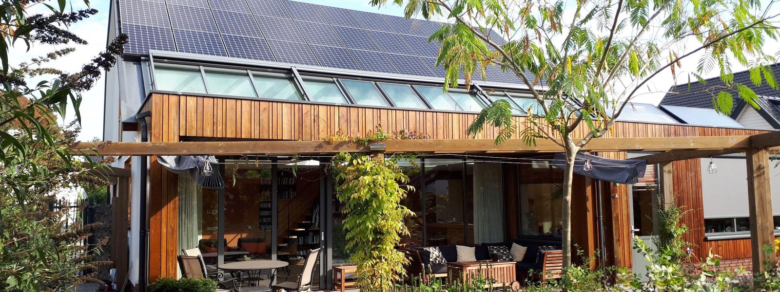 Ons uitgangspunt was een huis te bouwen van zoveel mogelijk duurzame en/of gebruikte materialen en dat energie oplevert.We hebben gekozen voor een betonnen fundering en verder hout-skelet-bouw, en materialen voor bouw en interieur die zo duurzaam mogelijk zijn, waarbij mogelijk van gerecycled materiaal. Door de uitstekende isolatie gebruiken we natuurlijk niet veel energie voor de verwarming, maar moeten we wel letten op de ventilatie. Dus hebben we gekozen voor een balans ventilatie (WTW) systeem. We hebben zonnepanelen, zonneboiler en een warmtepomp.We hebben dus geen gasaansluiting nodig. Een klein windmolentje zou leuk geweest zijn, maar wordt ons helaas afgeraden, daarvoor waait het in Driebergen niet hard genoeg