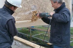 De constructeur was bureau B2Co uit Ede. Eigenaar Richard Fielt, beschikt over een ruime ervaring in het bouwen met hout en onderschrijft het gebruik van stro als bouwmateriaal. “Het toepassen van stro zorgt voor isolatiewaarde die anderhalf maal zo hoog ligt dan een traditionele bouw. Ook is deze manier van bouwen de helft lichter in gewicht. Omdat we hier op zandgronden zitten konden we door het lichtere gewicht volstaan met een plaatfundering van schuimbeton, zonder gebruik te maken van heipalen. Het schuimbeton heeft ook een isolerende werking”.