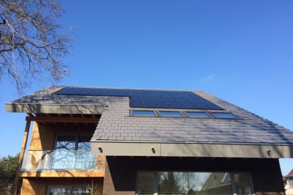 Ons duurzame huis is opgeleverd in 2015 en is ontworpen op basis van het Passiefhuis principe: woning op de zon gericht, veel glas op zuidzuide, gesloten aan de noordzijde, zware isolatie (RC-waarde > 8), driedubbel glas, hoge kierdichtheid, warmteterugwin (WTW) en lage termperatuurverwarming. De energie die we nog nodig hebben voor verwarming en warm tapwater produceren we met een lucht/water warmtepomp. Deze verbruikt elektriciteit, die we opwekken met 42 zonnepanelen op ons dak. De laatste metingen tonen aan dat we een Nul-op-de-Meter (NoM) woning zijn.