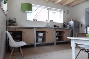Over de tichelkachel is Bert ook enthousiast. “De kachel geeft stralingswarmte, dat voelt erg prettig aan, net als de warmte van de zon”, vertelt Bert. “Met één uur stoken, blijft de kachel een hele dag warm. Hij is heel efficiënt en geeft nauwelijks uitstoot. Daarnaast is het een eyecatcher ter hoogte van een statafel. We staan er graag bij met een bakje koffie.” De kachel dient als verwarming voor het hele huis. Dat betekent dat het boven soms 15 graden is. Een nadeel? “Nee hoor. Ik ben een van de velen die het niet te warm wil hebben op de slaapkamer.”