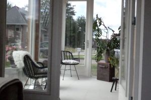 Een andere warmtebron is de wintertuin, een tuinkamer aan de voorkant van de woning met veel glas. “Het is een bufferruimte die de warmte van de zon opvangt”, legt Bert uit. “We hebben er in strenge winters veel profijt van. Als het buiten 5 graden is en de zon schijnt, dan is het daar al snel 20 graden. Als je de deuren naar de woonkamer en overloop open zet, dan verdeelt die warmte zich over huis en hoeft de kachel minder te werken.”