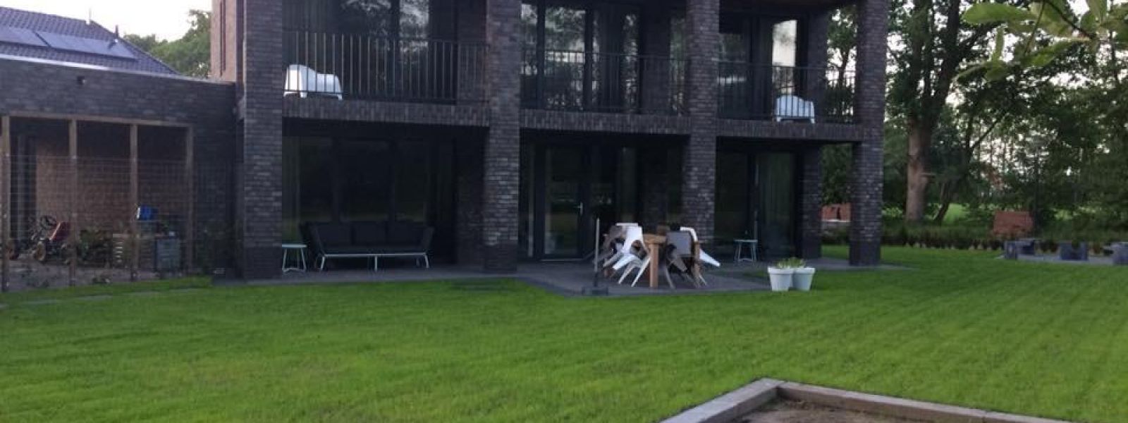 Winnaar publieksprijs duurzaamste huis van Fryslân >Deze medio 2017 afgeronde woning betreft het eerste (in de nabije toekomst gecertificeerde) passiefhuis in de gemeente Dantumadiel. Het is een eigen ontwerp dat door een bouwkundig bureau geschikt gemaakt is om aan de welstandscriteria te voldoen. Oriëntatie op het zuiden (volledig glazen puien). Balkon en overstek als natuurlijke zonwering. Geen gasaansluiting, all-electric. EPN -0,17. Regenwateropvangtank voor toiletspoeling, wasmachine, tuinbesproeiing en auto wassen. Grondgebonden warmtepomp voor (beperkte) vloerverwarming en warmwatervoorziening. Warm water tevens uit aantal zonnecollectoren. Passiefhuis gecertificeerde kozijnen uit Oostenrijk.De woning is in eigen beheer gebouwd en is in eigen beheer ontwikkeld. Vorm volgt functionaliteit. Massief passief, d.w.z. traditioneel ogend, gebouwd met baksteen. Binnenwanden van Poriso. Dubbele isolatielaag in de spouw. Rc-waarde gevel 11,31.