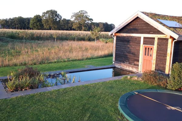 Plusenergiewoning met o.a. bodem/water warmtepomp, centrale balansventilatie, regenwater hergebruik, douche-WTW, slimme laadpaal en thuisbatterij op basis van gebruikte batterij uit EV.
