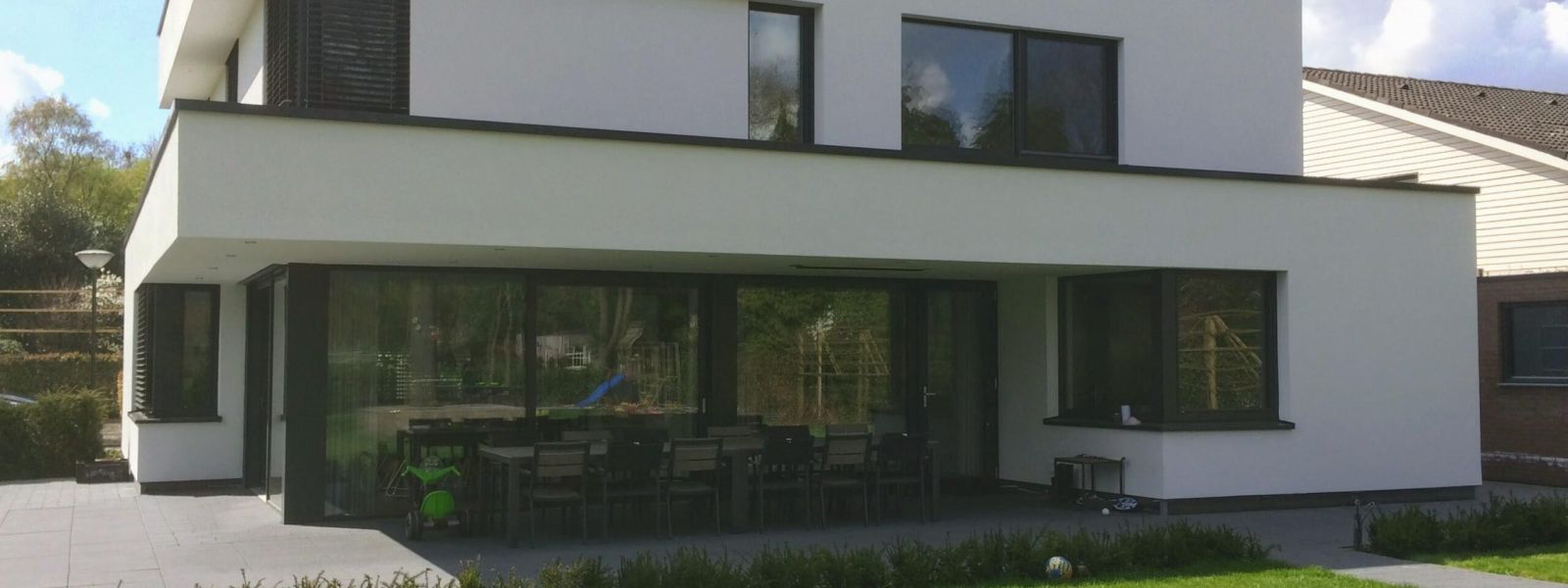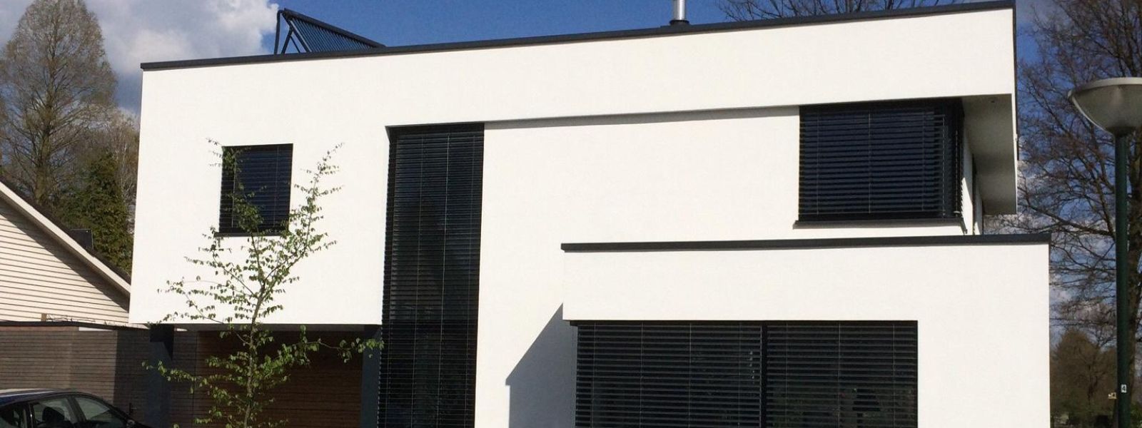 ’s Avonds en ’s nachts gebruiken we de zonwering ook als verduistering. Daardoor hebben we binnen ook minder vitrage nodig.