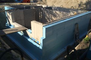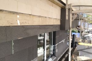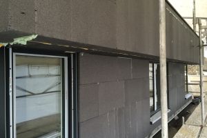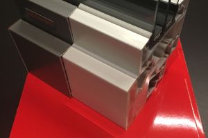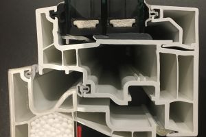Bij keuze voor triple glas is het belangrijk om ook goed isolerende kozijnen te kiezen. Anders loop je risico op condensatie op het kozijn doordat deze kouder worden dan het raam en de geïsoleerde muren. De kozijnen van Internorm bleken de beste isolatiewaarden te hebben. Andere merken kwamen niet verder dan een U-waarde van 1,0 W/m2K. Ook niet verkeerd overigens maar bij zoveel raampartijen en flink geïsoleerde gevels maken kozijnen veel verschil op het geheel. Op de foto staat een voorbeeld doorsnede van het kozijn met kunststof binnenkant en aluminium buitenzijde. De kozijnen die wij hebben toegepast hebben 3 geisoleerde kamers waarvan 1 gevuld met geperste isolatie voor nog betere waarden. Normaal wordt de isolatie erin geschoven met dus nog minimale lekken.