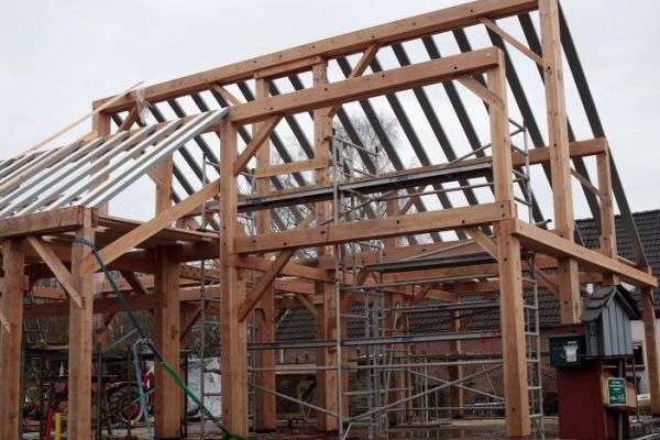 Het betreft hier een geheel houten woning, welke zelf ontworpen en geheel eigenhandig is gebouwd. De kern van het huis (het gebinte) en het uitwendige deel bestaat uit regionaal gegroeid Douglas.De bouw van de woning is gestart in augustus 2014 en vanaf februari 2016 wonen we erin. Het huis is gebouwd volgens de passiefhuis principe en voorzien van een balansventilatie systeem met luchtverwarming met warmte terugwinning en zonneboiler.Eind 2017 zijn er 22 zonnepanelen aan geplaatst.In 2022 is de gasgestookte CV-ketel vervangen door: Een electrische geiser t.b.v. de warmwatervoorziening en; Een warmtepomp + buffervat t.b.v. de voeding van de luchtverwarming.Bij de woning is een fruit- en moestuin, een ruim kippenverblijf en een bijenstal. Daarmee zijn we voor veel producten zelfvoorzienend en wordt ook de input geleverd voor ons huiskamer restaurant.
