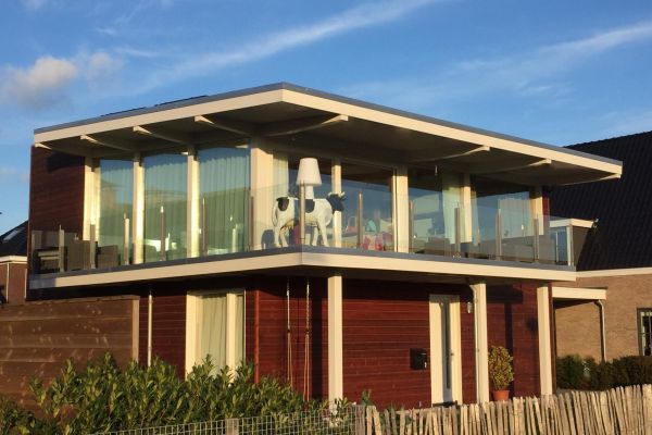HUIS MET DE KOE – Op de mooiste locatie in Alkmaar staat deze nieuw gebouwde, circulaire, energieleverende woning. Speciaal ontworpen voor deze locatie en geheel met hernieuwbare materialen gebouwd. Energie wordt geleverd door 12 gewone (PV) zonnepanelen en 10 PVT-panelen, die behalve elektriciteit ook warmte leveren voor de warmtepomp. De grote ramen op het zuiden zorgen voor extra zonnestralingswarmte in de winter, terwijl de grote overstek de zomerwarmte buiten houdt. Het sedumdak zorgt voor afvang van fijnstof, buffering van regenwater en koeling in de zomer. De woonkamer/keuken is boven zodat maximaal van het uitzicht op deze locatie wordt geprofiteerd.