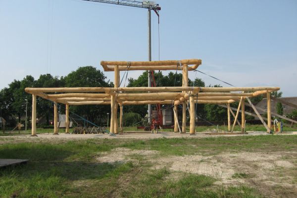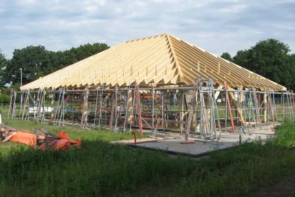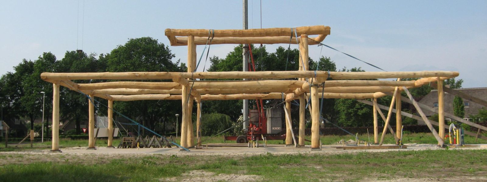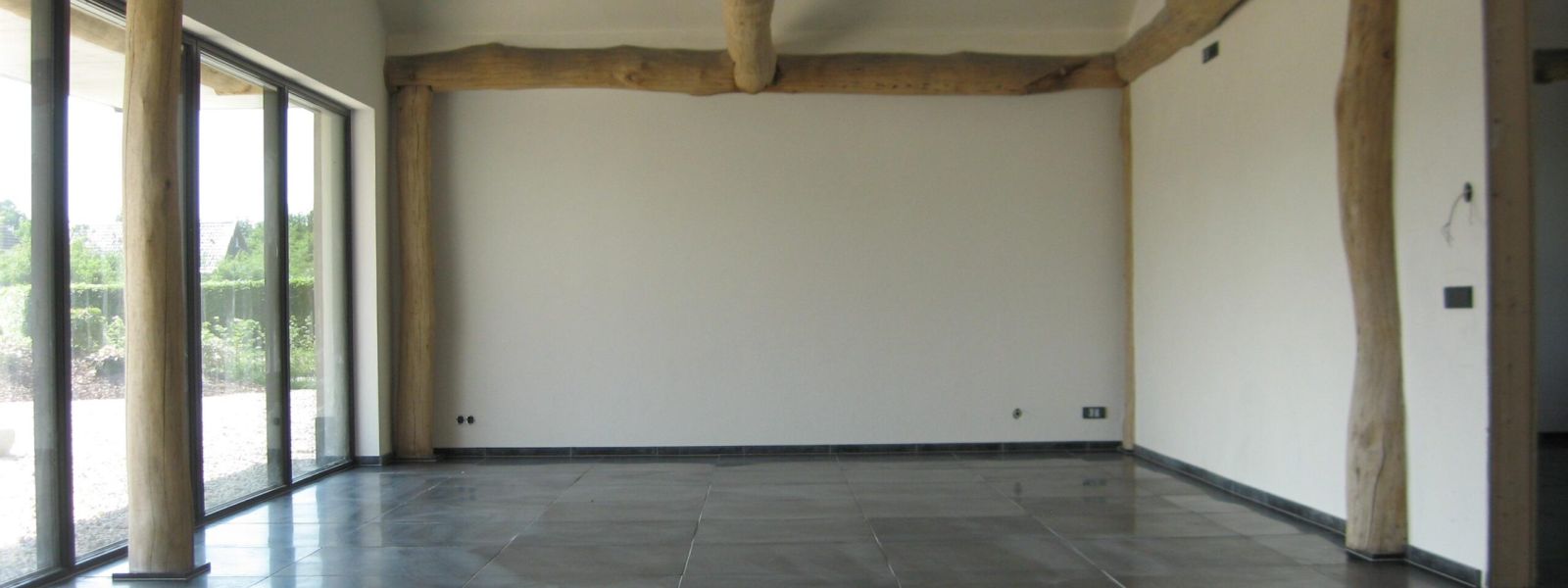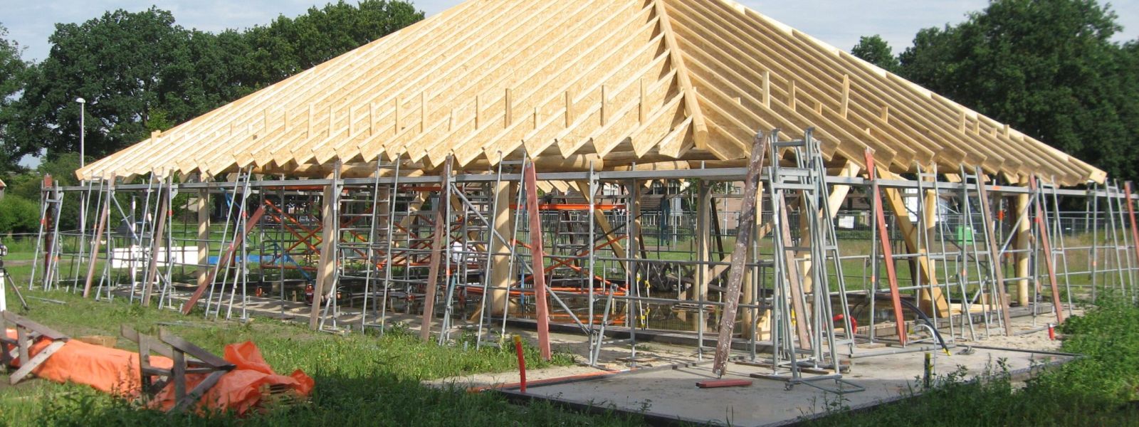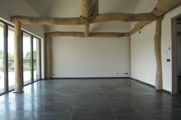 Rondhout eiken gebinten op ecocrete100 poeren;