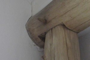 Het aansluiten van dakliggers en afwerkende plaatmaterialen op rondhout heeft heel veel extra uren gekost (lees: hogere kosten met zich meegebracht). Bovendien bevat onbewerkt rondhout alle spinthout en daar is met name de bruine spinthoutkever (lyctus bruneus) verzot op. Deze beestjes maken dezelfde gaatjes als houtworm maar hebben een levernscyclus van slechts 3 maanden tegenover 3 jaar voor de houtworm. Een vrouwtje legt gemiddeld 500 eitjes. Resultaat heel veel beestjes en houtstof. Na drie behandelingen van het hout zijn we nu voor 99,9% verlost van deze beestjes. Als we dit alles van tevoren hadden geweten hadden we vierkant gezaagd eikenhout gebruikt. We hadden ons ingesteld op breedtekrimp (8%) en het werken van het hout. Dat valt eigenlijk wel mee. Met enige regelmaat horen we knallen waaruit kan worden opgemaakt dat het hout inderdaad werkt. Door het werken van het hout zijn er wat scheurtjes ontstaan in de aansluitende materialen. Het krimpen is aanzienlijk minder dan de 8% waarop we gerekend hadden. Er zou geen lengtekrimp zijn. In werkelijkheid is die 0,5%. Op een totale lengte van 15 meter is dat 7,5 cm, iets waarmee geen rekening is gehouden. Het verklaart voor een deel de knallen in het hout.