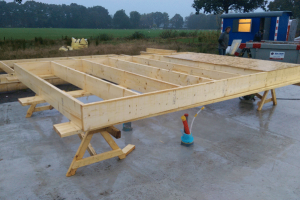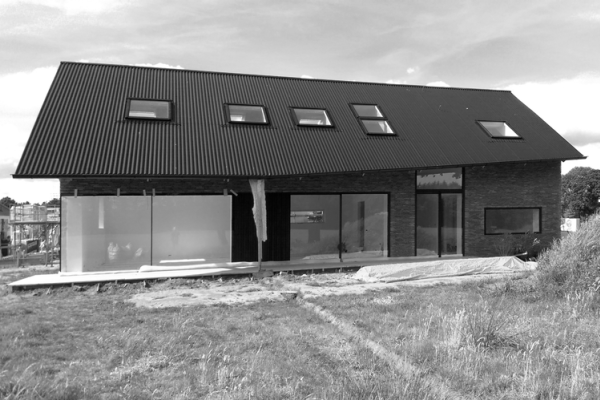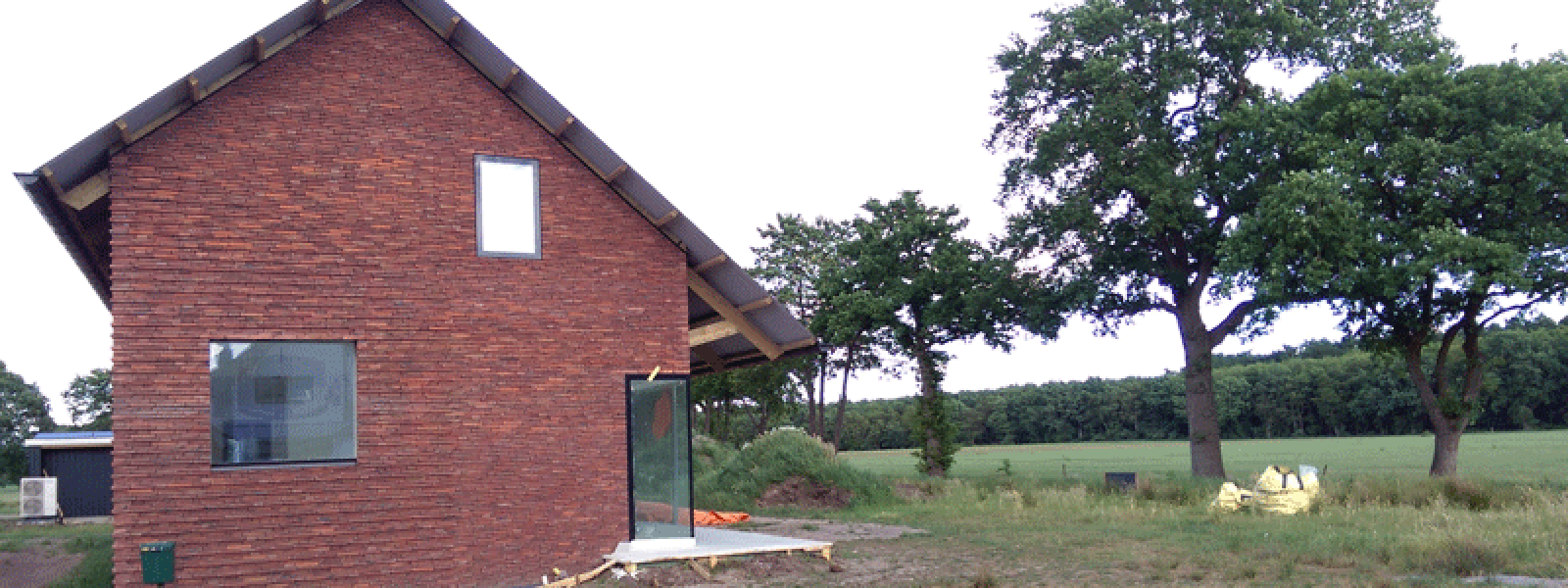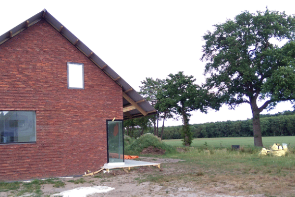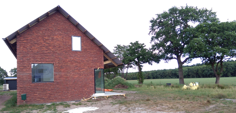 Deze ‘zongerichte schuurwoning’ is deze zomer opgeleverd en volledig gebouwd in houtskeletbouw. De woning is ontworpen volgens de principes van een passiefhuis, met veel glas op het zuiden en weinig glas op het noorden. De woning is luchtdicht gebouwd en heeft een RC-waarde van 6 voor de gehele schil. De constructie is dampopen, dat wil zeggen, er zijn geen folies toegepast en de gebruikte materialen zijn natuurlijk en vochtaccumulerend. Het ventilatiesysteem is gebalanceerde ventilatie met wtw. Het warmtapwater en de vloerverwarming wordt verzorgd door een zonneboilersysteem met electrisch verwarmingselement.