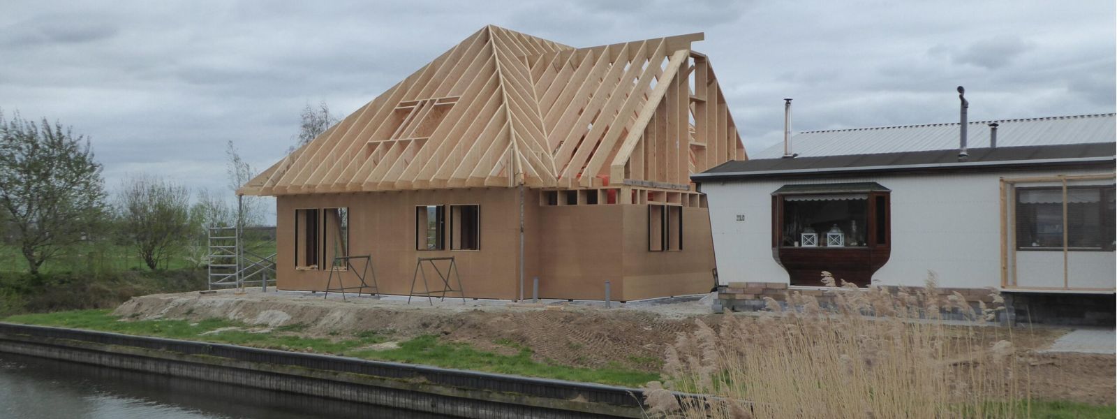 Het is een houtskeletbouw passiefwoning. We bouwen deze woning in eigen beheer, zonder aannemer.