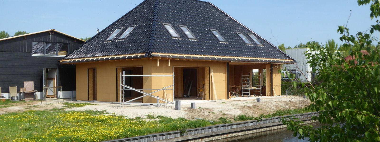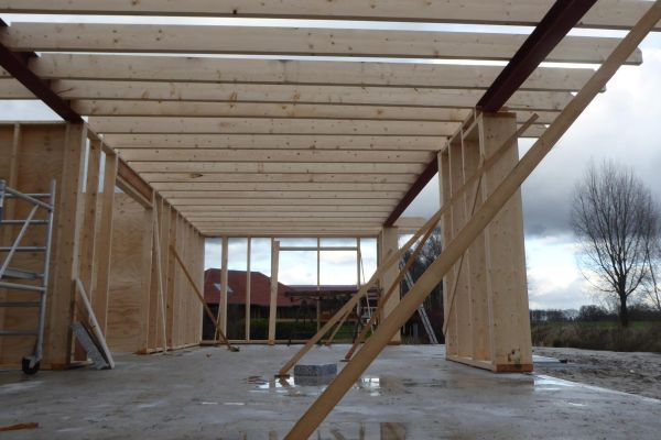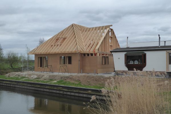 Het is een houtskeletbouw passiefwoning. We bouwen deze woning in eigen beheer, zonder aannemer.