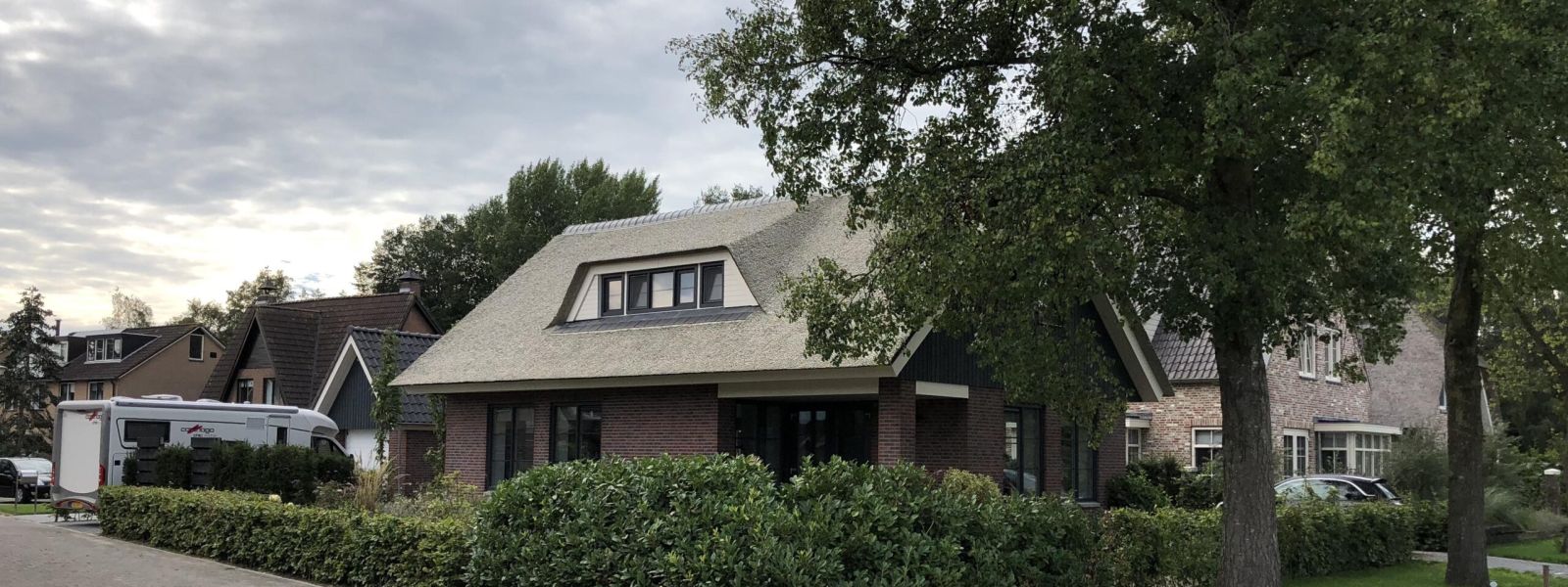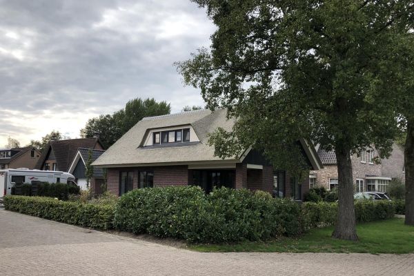 Nieuwbouwwoning (2017), NOVA-rietkap met dakelementen Unidek riet, kunststof kozijnen, zonder gasaansluiting, (aard)warmtepomp, zonnepanelen, dubbelglas HR++ 1,64 U-waarde, Styro stone opbouw met een warmte- en weerstandwaarde van 6,9 (RC-waarde tot 10,5 mogelijk), spouwmuur isolatie 137 mm Isover Multimax 30 ultra.