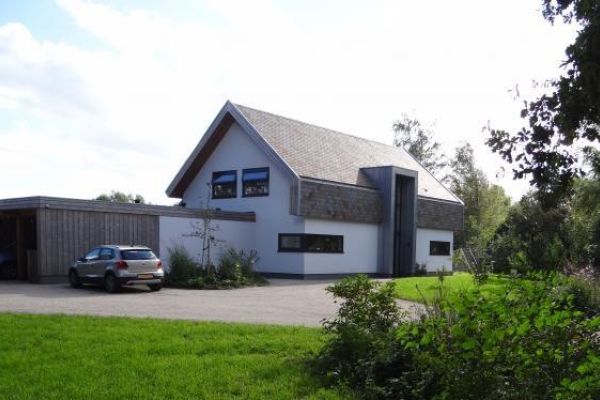 Comfortabele, goed geisoleerde vrijstaande woning voorzien van energiezuinige apparaten en een warmtepomp. Gebouwd met natuurlijke materialen, veel zonnepanelen en gasloos.