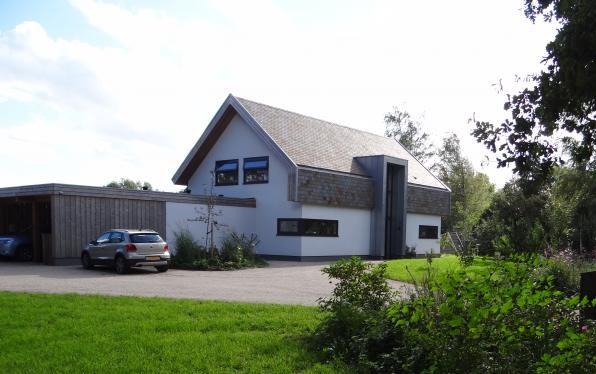 Comfortabele, goed geisoleerde vrijstaande woning voorzien van energiezuinige apparaten en een warmtepomp. Gebouwd met natuurlijke materialen, veel zonnepanelen en gasloos.