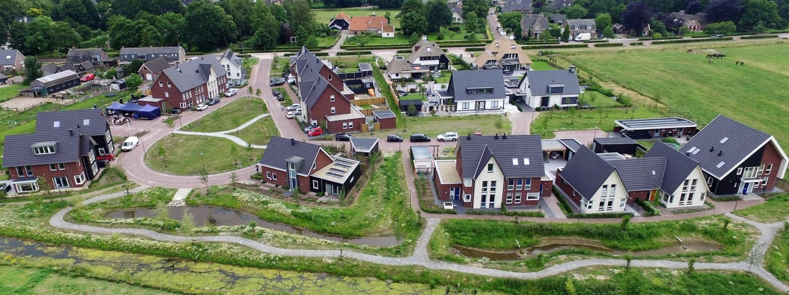 De vrijstaande woning maakt onderdeel uit van een burgerinitiatief in Nijkerk. De initiatiefnemers / bewoners ontwikkelden, via Collectief Particulier Opdrachtgeverschap (CPO), een wijkje met 20 woningen. De woningen (vier vrijstaande, vier twee-onder-één-kappers en twee rijwoningen van vier) vormen een eenheid door hun variatie. Als mede-initiatiefnemer, voorzitter van de Vereniging en inmiddels bewoner ben ik nauw betrokken bij de ontwikkeling van ‘Holkerbeek’.CPO Holkerbeek is meer dan alleen een bouwproject. De initiatiefnemers ontwikkelden een woonwijkje waarin duurzaamheid (o.a. grondgebonden warmtepompen / zonnepanelen i.p.v. gas) één van de belangrijkste uitgangspunten is. Sociale cohesie wordt gestimuleerd. De woningen (EPC 0) zijn bij de bouw (in 2017) ook voorzien van een gasleiding……. maar deze wordt dus voor de verwarming van de woningen niet gebruikt. De wijk Holkerbeek heeft veel groen is voorzien van wadi’s. http://www.holkerbeek.nl”>http://www.holkerbeek.nl