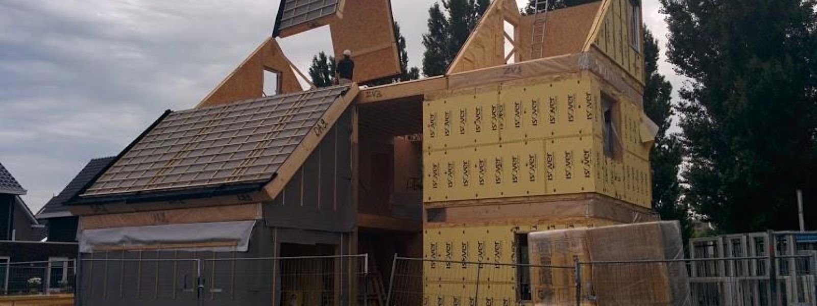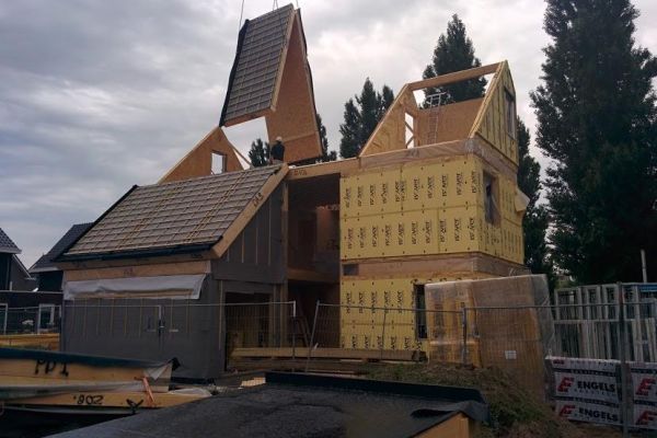 Tijdens de bouw van het huis zijn verschillende filmpjes gemaakt, zie https://www.youtube.com/watch?v=CzYJpS1N_P0″>www.youtube.com/watch?v=Cz…; voor de vlogs. Hierop is duidelijk te zien hoe de prefab houten elementen worden gemonteerd.