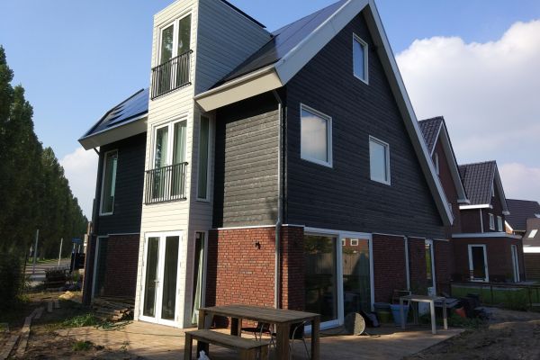 De woning is door ons zelf ontworpen en voor een deel zelf gebouwd. We wonen er nu een jaartje met veel plezier.