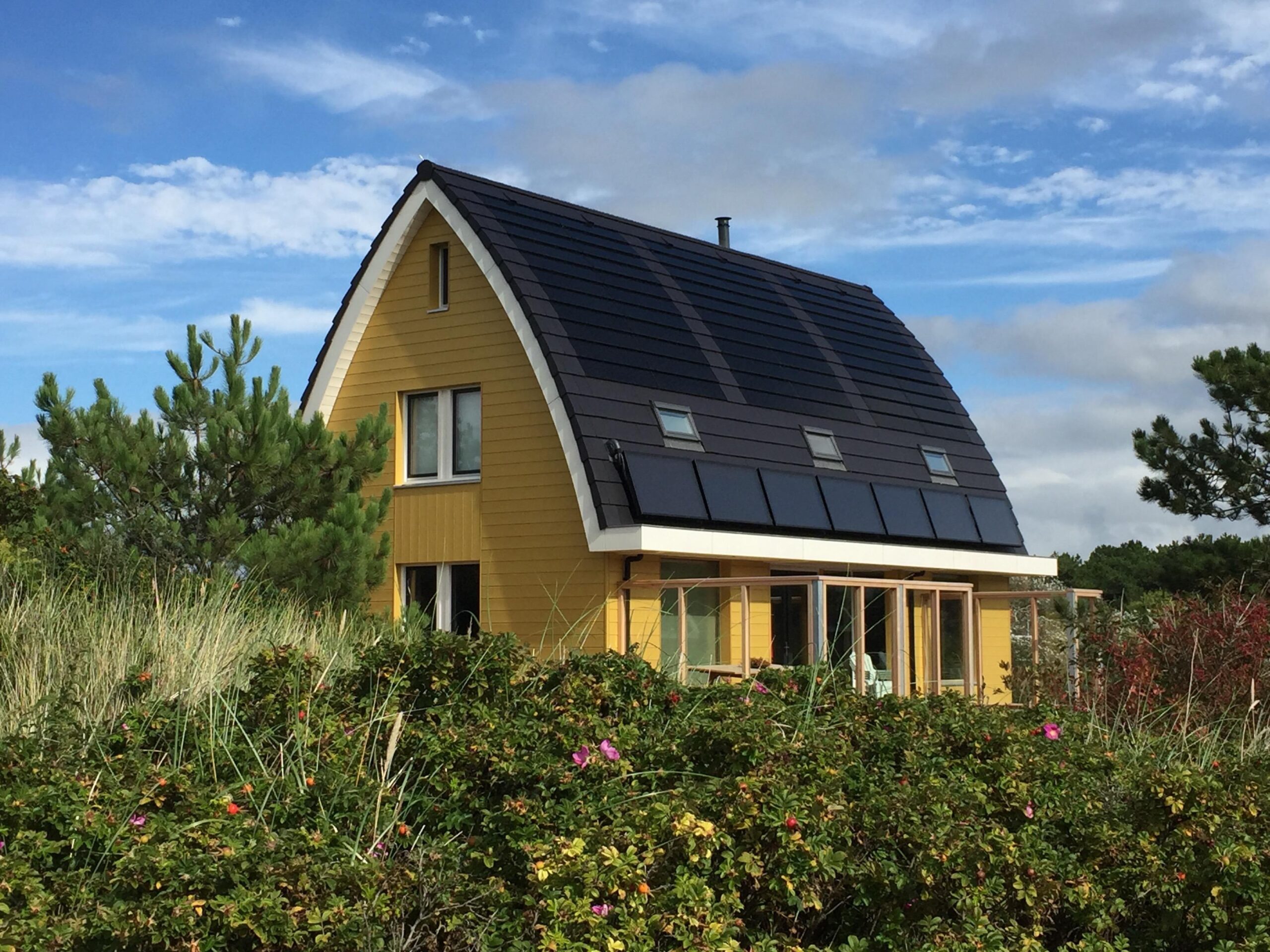 Yn’ t Dún is een vier-seizoenen vakantiehuis op Vlieland, uitgerust met zonnepanelen in het dak, zonneboilers en een warmtepomp en dat maakt het huis volledig energieneutraal.