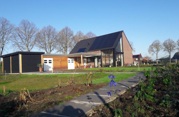 Duurzame woning aan de rand van Wageningen. Het is een passiefwoning, wat betekent dat deze woning vrijwel zonder verwarmingsinstallatie warm wordt zo goed is deze woning geïsoleerd. Het huis is opgebouwt in houtskeletbouw. Voor de isolatie van deze woning is het natuurproduct cellulose gebruikt. In de nacht wordt de warme lucht uit de woning geventileerd.