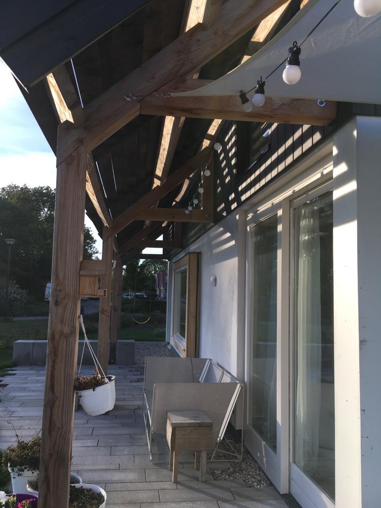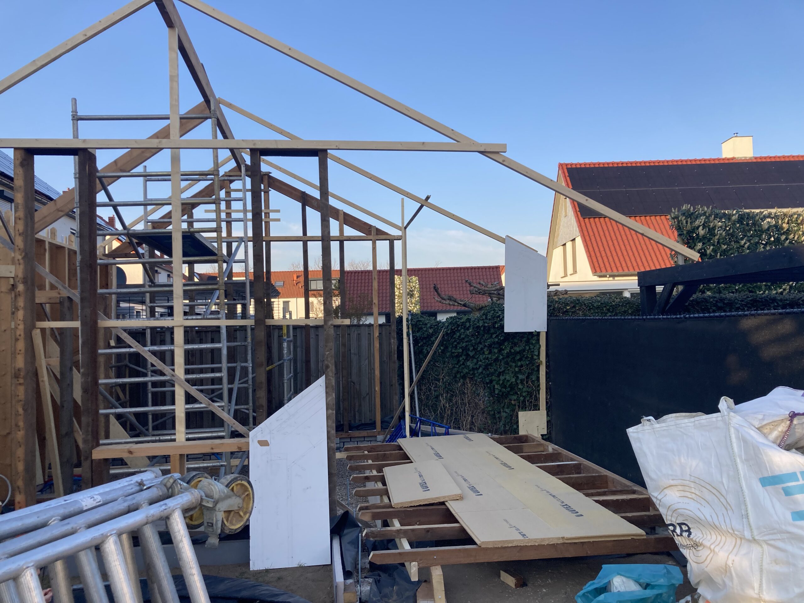 In 2025 hebben we een volwaardig 2e huisje in de tuin gebouwd. Opnieuw met duurzame biobased materialen en ditmaal ook met veel mogelijk her gebruikte materialen, veelal hout. De constructie is van houtskellet, ditmaal van hergebruikte houtenbalken de we op locatie aangebracht hebben. Ook hebben we hennep als wand isolatie gebruikt ditmaal niet in het werk gestort maar tussen 2 houtvezelplaten waardoor het hennep minder aangeduwd hoeft te worden, dit maakt het bouwen eenvoudiger en krijgen we zelf een hogere isolatiewaarden. Het dak is in situ gemaakt van houtenbalken, houtvezelplaten met daartussen houtvezel isolatie matten. Veel van onze materialen komen van groene bouwmaterialen.nl af. Ze hebben ons goed geadviseerd over bijvoorbeeld de detailering.