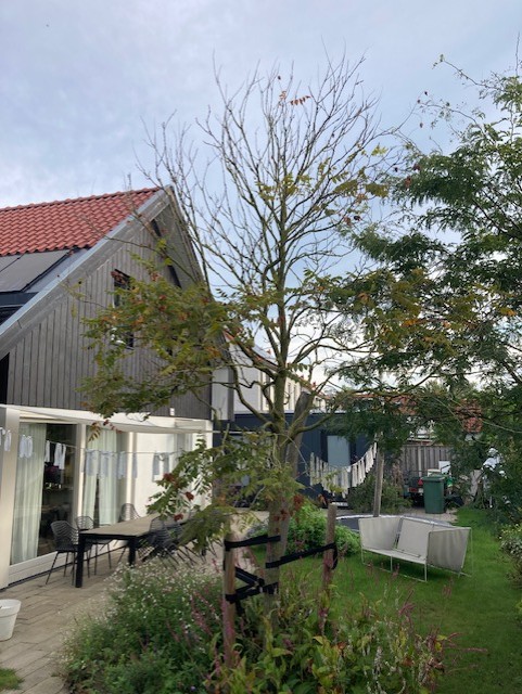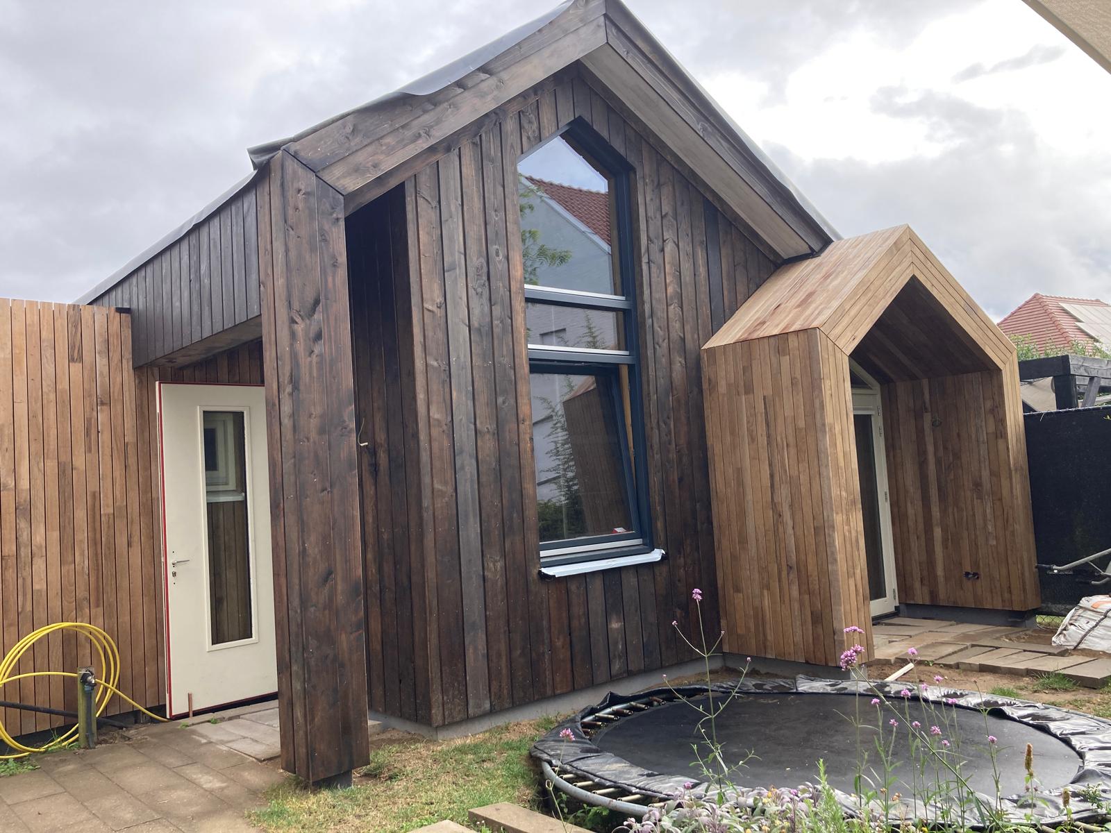 In 2025 hebben we een volwaardig huis(je) in de tuin gebouwd als werk, logeer en terugplek plek. De houtskelet constructie hebben we gemaakt van hergebruikte houten profielen