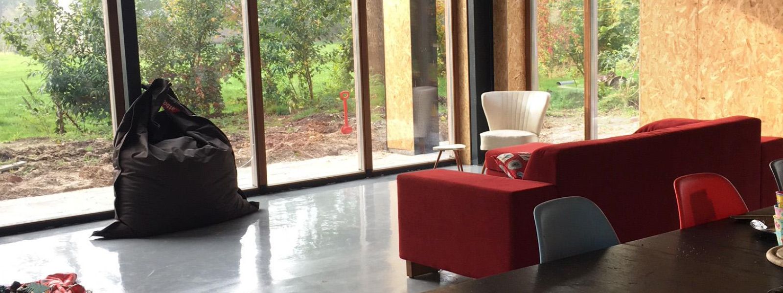 Wij hebben heel recent een (schuur)woning laten bouwen. Het is dan ook nog niet helemaal af en de woonkeet waar we jaren in hebben gewoond staat nog in de tuin. Onze woning wordt verwarmd door middel van aardwarmte. Die warmte proberen we binnen huis te houden door isolatie van vlasvezel en tripple-glas. In de zomer kan er met dezelfde aardwarmtepomp gekoeld worden. De energie die deze aardwarmtepomp kost, zal worden opgewekt met PV panelen. We hebben er 32 gepland, maar die worden ergens deze herfst geinstalleerd. Althans, als alles voorspoedig verloopt, wat zelden zo is bij het bouwen van een woning. Verwacht bij ons geen fancy keuken, want die staat gepland voor de kerstvakantie, of voorjaarsvakantie of voor een ander moment waarop we een weekje vrij hebben en we de kinderen een week lang voor Teletubbies kunnen zetten, zodat wij ongestoord kunnen klussen. Tot die tijd: Pizza, Patat en Pannekoeken. Wat betreft die drie kinderen… verwacht bij een bezoek aan ons stulpje rommel in het huis: Lego op de vloer en klei op de stoel. Desalniettemin, bent u meer dan welkom. We zijn geen experts, maar kunnen u precies vertellen wat u niet moet doen.