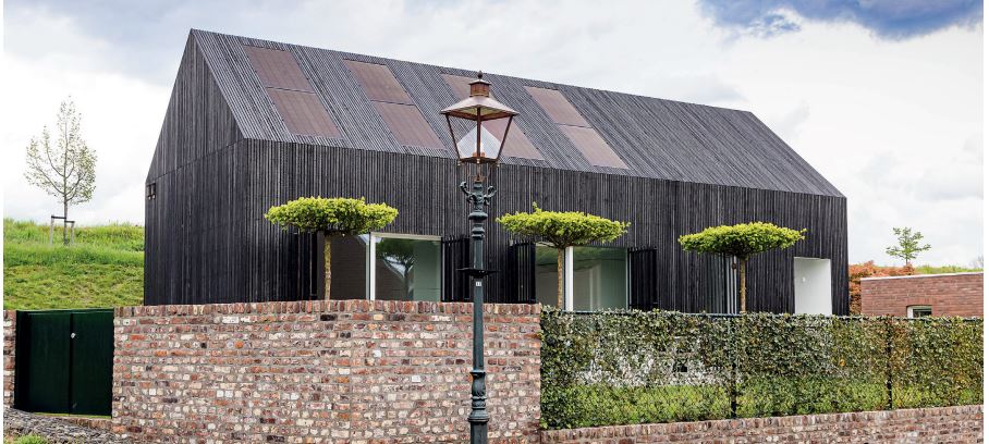 Dit is huis is in beeld gebracht door het programma Binnenste Buiten. “Uitgangspunt waren de twee schuren die er stonden toen ze de kavel kochten maar dan vertaald naar een moderne, duurzame uitvoering van een langgevelboerderij. Verder wilden ze graag zo minimalistisch mogelijk bouwen en inrichten om hun levensfilosofie kracht bij te zetten.”