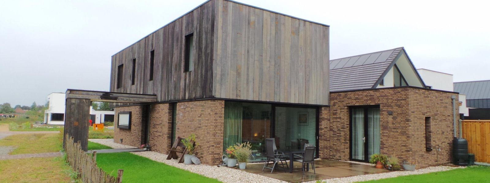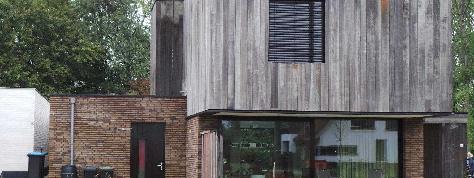 Een energie neutrale nieuwbouw woning waarbij gebruik is gemaakt van hergebruik van materialen. Voor de gevel afwerking en de tuininrichting.