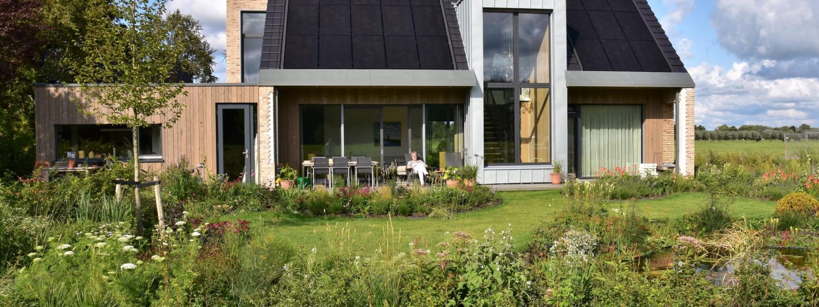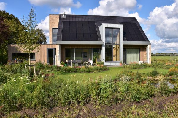 Noortheylaan 13 is een nieuwe woning die net klaar is. Het is een vrijstaand huis, onder architectuur gebouwd. De constructie is houtskeletbouw met cellulose als isolatiemateriaal. Alle ramen zijn van triple glas. Het grote terras is van hergebruikt plastic. Wij hebben 27 zonnepanelen, een warmtepomp (geboord, gesloten grondwater circuit) en balansventilatie met warmteterugwinning. Onder de voortuin ligt een regenwatertank van 7500 liter: Voor de wasmachine en het doortrekken van het toilet gebruiken we zoveel mogelijk regenwater. Aan de voorkant van de woning, op het noordoosten, zijn de ramen relatief klein, aan de achterkant hebben we veel raamoppervlak. Onze woning is niet alleen energieneutraal, maar het is ook een passiefhuis.