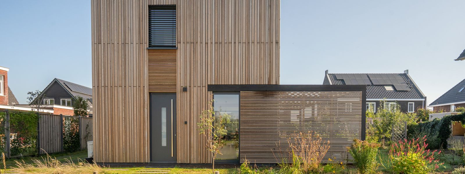 Passiefhuis. Met -10 buiten te verwarmen met een föhn. Houtskeletbouw met binnenwanden van CLT, damp open met natuurlijke isolatie, voornamelijk houtvezel. RC waarden van 10, 9 en 8 voor respectievelijk het dak, wanden en vloer. Er is goed gelet op gebruik van de zon als energiebron. Onder architectuur gebouwd. Architect: Evert-Jan Lemson