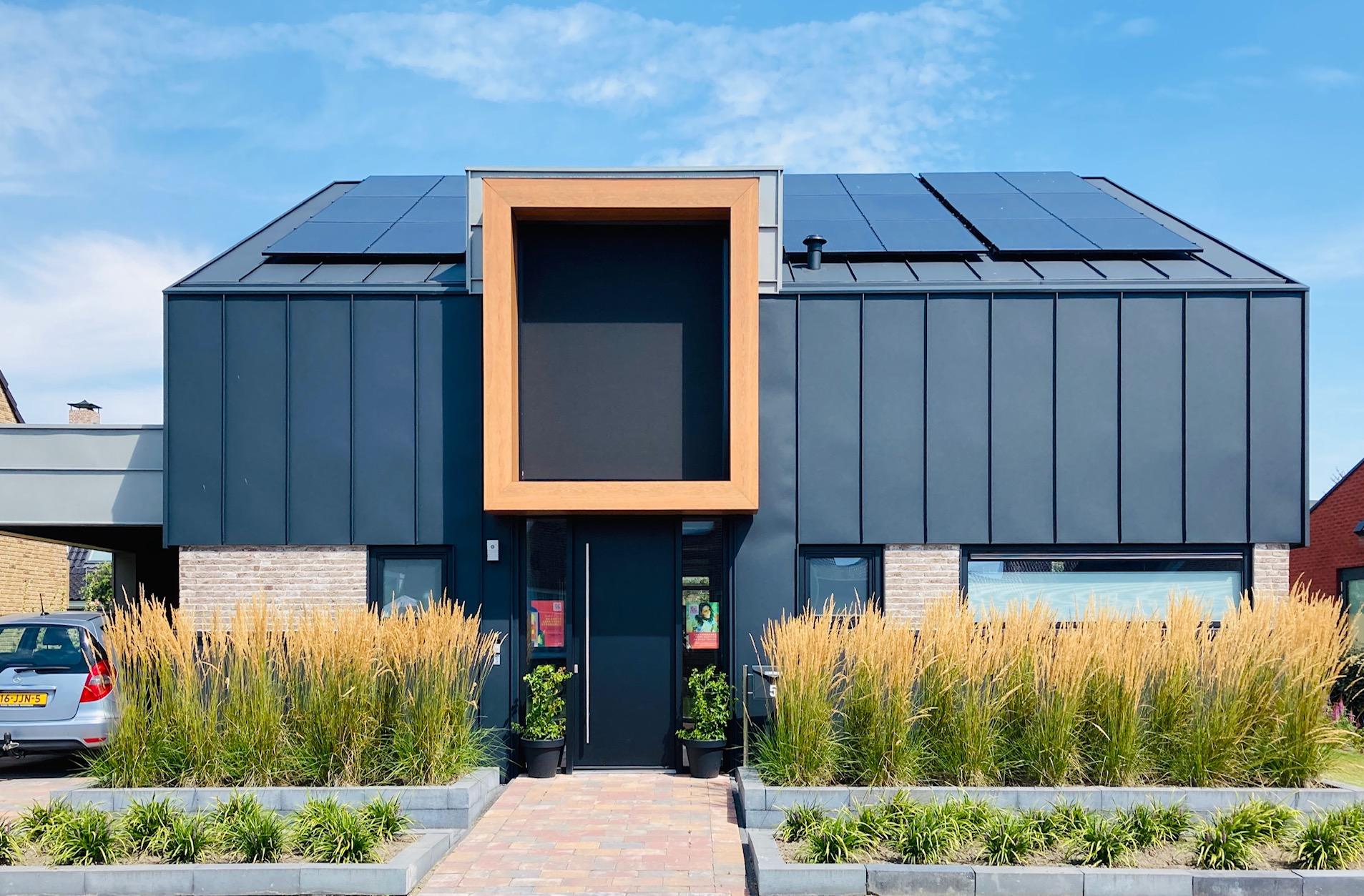 Onze woning is levensloop bestendig met een slaapkamer en badkamer op de begane grond. Boven nog twee slaapkamers en een kleine badkamer en wat bergruimte. De totale bruto vloeroppervlakte is circa 190 m2 met een bruto inhoud van ruim 600 m3. Op basis van een programma van eisen ontwierp architect Herwig Minnen van Architecten Alliantie een woning met een moderne vormgeving. Zeer onderhoudsarm, door toepassing van gevelbeplating in zink, steenstrips en aluminium kozijnen.