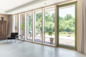 https://duurzamehuizenroute.nl/verkiezing/winnaars-juryprijs-2020″>Winn… juryprijs verkiezing Duurzaamste Huis van Nederland 2020Vrijstaande levensloopbestendige (eenlaags) passiefwoning. Het huis is een houtskeletbouw woning met rondom open of te openen buitenruimtes gemaakt van steen en beton. Het houten (binnen)huis heeft zeer hoge isolatiewaarden en luchtdichtheid. Door deze maatregelen moet er goed rekening gehouden worden met zonintreding. De betonnen dakplaten van de buitenruimtes vormen de dakoverstekken van het binnenhuis en doen zo dienst als passieve zonwering. De afsluitbare buitenruimte op het zuiden is een grote wintertuin / orangerie en is van de woonkamer gescheiden door een glazen pui over de volle gevelbreedte. De houtskeletbouw is in Duitsland geprefabriceerd en heeft een Douglashouten gevelbetimmering. De buitenruimtes annex overstekken zorgen voor (bijna) volledige bescherming tegen regen en maken de gevels nagenoeg onderhoudsvrij. De woning wordt verwarmd en gekoeld door een bodemwarmtepomp met vloerverwarming. Een zonneboiler draagt bij aan een energiezuinige warmwatervoorziening. Regenwater wordt opgevangen en gebruikt voor WC spoeling en wassen. Warm water van de boiler wordt gebruikt voor vaatwasser en wasmachine (hotfill). 18 PV-panelen zorgen voor meer elektriciteitsopwekking op jaarbasis dan wordt verbruikt.
