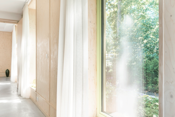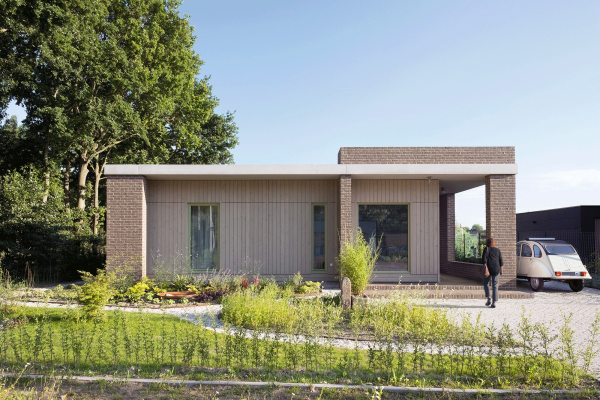 https://duurzamehuizenroute.nl/verkiezing/winnaars-juryprijs-2020″>Winn… juryprijs verkiezing Duurzaamste Huis van Nederland 2020Vrijstaande levensloopbestendige (eenlaags) passiefwoning. Het huis is een houtskeletbouw woning met rondom open of te openen buitenruimtes gemaakt van steen en beton. Het houten (binnen)huis heeft zeer hoge isolatiewaarden en luchtdichtheid. Door deze maatregelen moet er goed rekening gehouden worden met zonintreding. De betonnen dakplaten van de buitenruimtes vormen de dakoverstekken van het binnenhuis en doen zo dienst als passieve zonwering. De afsluitbare buitenruimte op het zuiden is een grote wintertuin / orangerie en is van de woonkamer gescheiden door een glazen pui over de volle gevelbreedte. De houtskeletbouw is in Duitsland geprefabriceerd en heeft een Douglashouten gevelbetimmering. De buitenruimtes annex overstekken zorgen voor (bijna) volledige bescherming tegen regen en maken de gevels nagenoeg onderhoudsvrij. De woning wordt verwarmd en gekoeld door een bodemwarmtepomp met vloerverwarming. Een zonneboiler draagt bij aan een energiezuinige warmwatervoorziening. Regenwater wordt opgevangen en gebruikt voor WC spoeling en wassen. Warm water van de boiler wordt gebruikt voor vaatwasser en wasmachine (hotfill). 18 PV-panelen zorgen voor meer elektriciteitsopwekking op jaarbasis dan wordt verbruikt.
