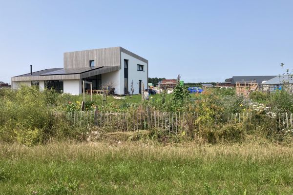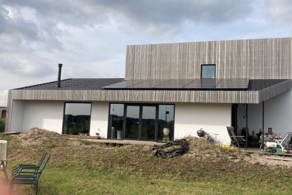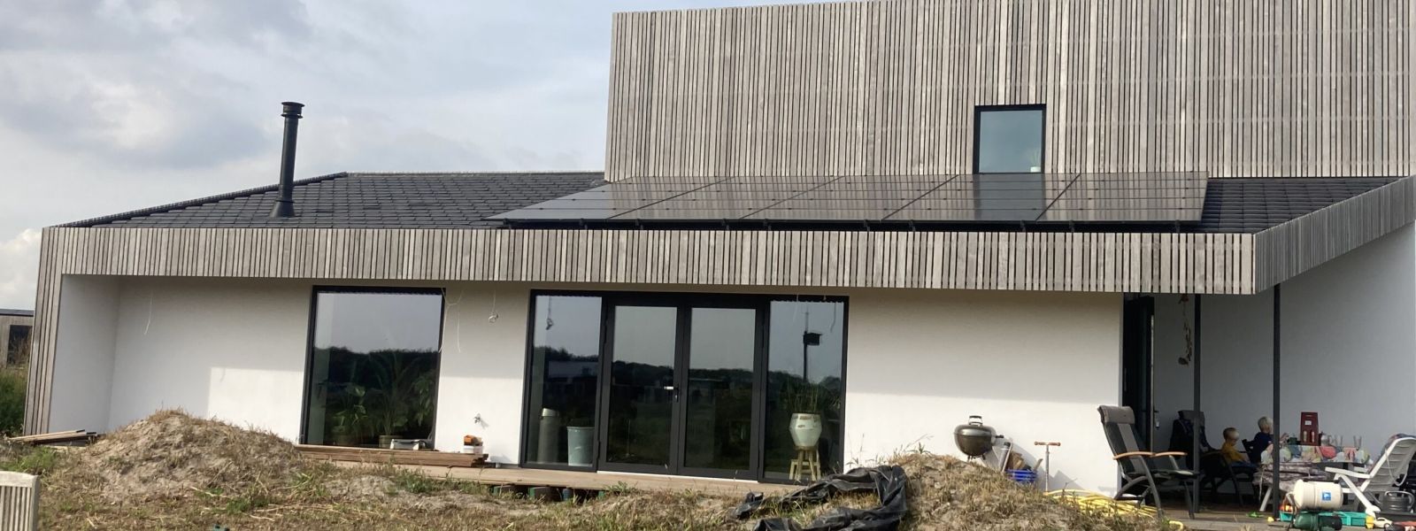 Een energieneutrale woning uit 2020. Lucht-waterwarmtepomp, WTW, douche-WTW, 8000wp aan zonnepanelen. Slimme overstekken voor schaduw in de zomer en zonnewarmte in de winter.