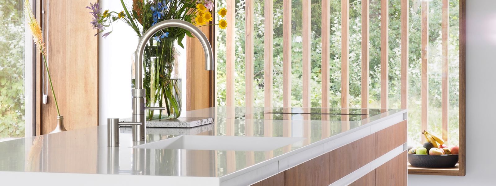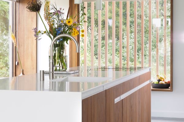 Modulaire warmtepomp met gesloten bronnen en boiler, zonnepanelen, vloerverwarming en koeling, een groendak en duurzame ledverlichting