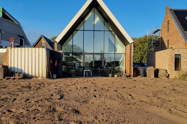 Op dit moment zijn wij druk bezig met de bouw van onze duurzame schuurwoning van prefab houtenskelet. Middels een glasgevel op het zuiden willen we voornamelijk gebruik maken van zonne energie om het huis op te warmen. Om te hoge opwarming te voorkomen is er een duidelijke overstek aanwezig. Isolatie van het huis is door middel van natuurlijke glaswol zonder bindingsmiddelen.