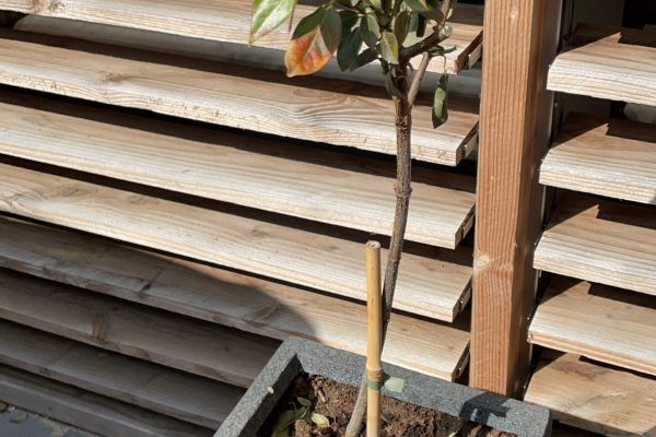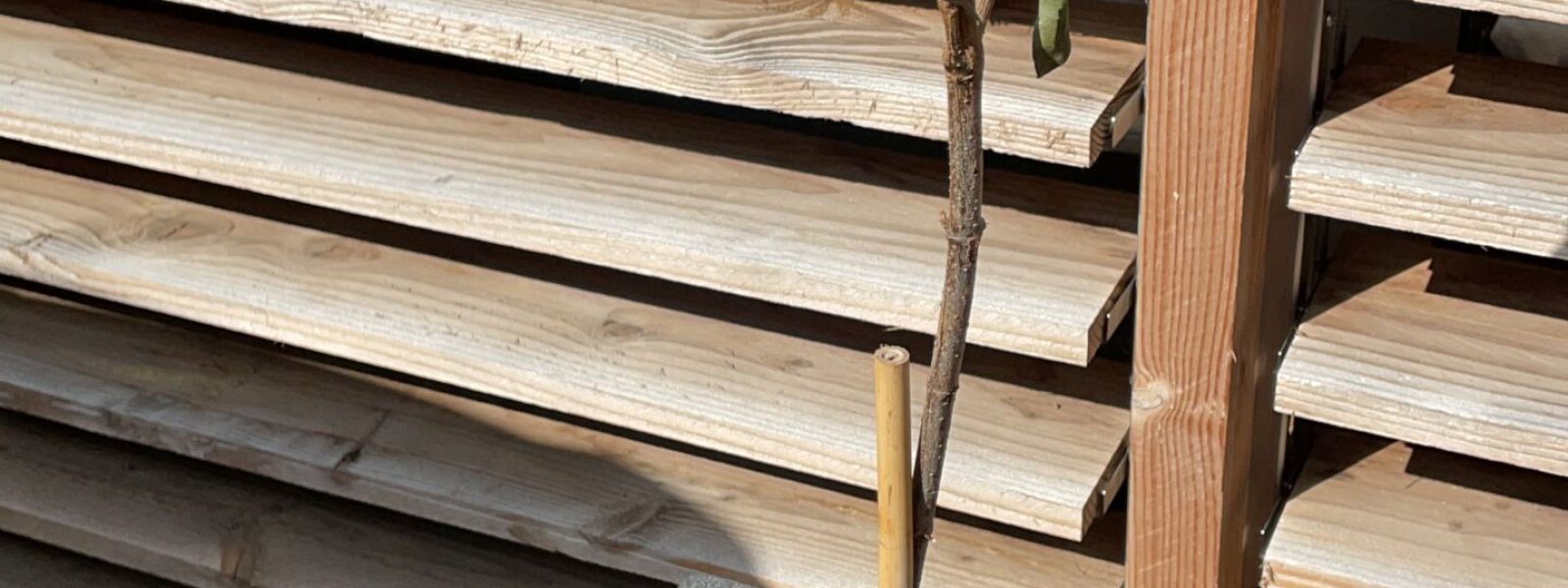 houtskelet – SIP panelen. Driedubbele beglazing – lamellen aan de buitenkant tegen de zon. Energielabel is beslist beter dan A, maar we hebben het niet officieel laten meten.