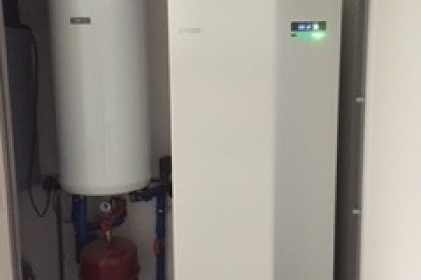 Warmtepomp lucht water, zonnecellen 39 van 325 w totaal 12.750 watt.