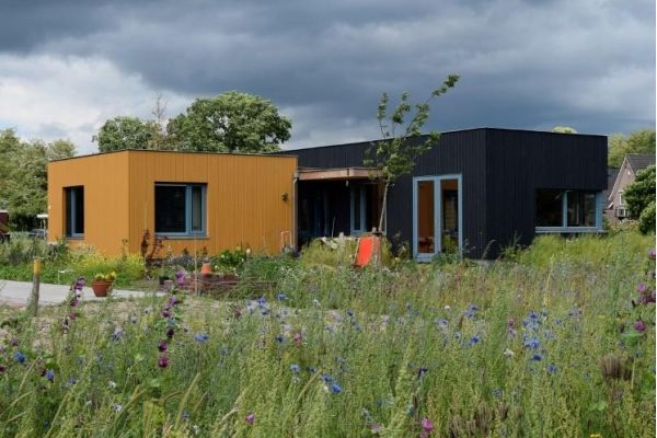 Noord-zuid orientatie, houten gevels, geprefabricerd, Rc>6,0 van alle constructie onderdelen, triplle beglazing, sedum casettes op het dak, een luchtwaterwarmtepomp, geen gasaansluiting, hemelwaterinfiltratie, voorts opvang hemelwater in 2 vaten van elk 250Liter, levensloopbestendig, zoveel mogelijk ecologische materialen, dampopen gevels, etc