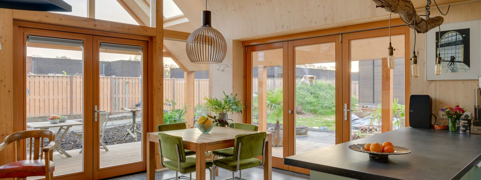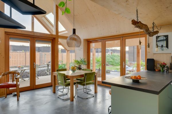 We genieten erg van ons huis omdat een houten huis een fijn huis is.