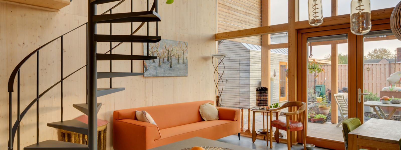 Onze woning is in 2021 gebouwd. We hebben het samen met de Woonpioniers uit Amsterdam ontworpen. Het is een variant op het type huis dat zij als Indigo op de markt hebben gebracht. Het is een houten huis waarbij rekening is gehouden met de instraling van de zon zodat het huis in de winter snel opwarmt en in de zomer koel blijft. De woning wordt verwarmd en gekoeld met een luchtwarmtepomp. Deze warmtepomp verwarmd ook het water in de boiler.