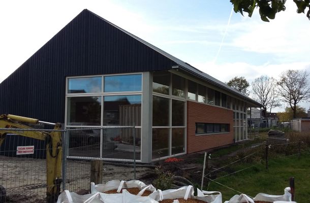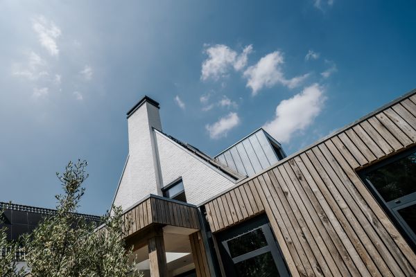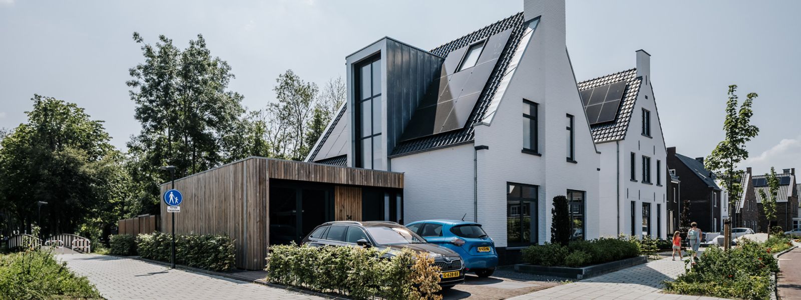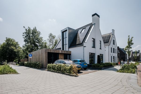 Vrijstaande, energieleverende woning in houtskeletbouw (bouwjaar 2021).