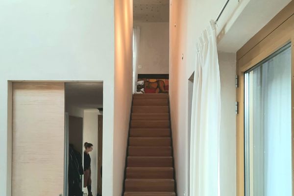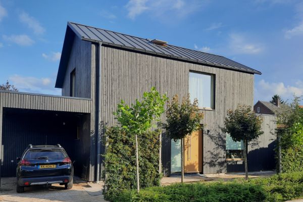 Biobased levensloopbestendige woning (2021), houtskeletbouw met houten gevelbekleding, zon georiënteerde achterzijde (ZZO) met grote ramen. zomernachtventilatie Rondom triple beglazing.Verwarming / ventilatie d.m.v. warmtepomp (Nilan Compact P, lucht/lucht met boiler en WTW).Ruukki felsdak, daarop 30 zonnepanelen (9900 Wp). Jaarlijkse opbrengst ca. 10.500 kWh, eigen energiebehoefte ca. 5.200 kWh (gemiddelden). Bij het ontwerpen was nog geen sprake van netcongestie; de overcapaciteit betekent dat je in een groter deel van het jaar energieneutraal bent. Wellicht in de toekomst met een thuisbatterij of V2G elektrische auto: de elektra is hierop voorbereid. Gebouwd op een ondergrond van glasschuim. Er zijn bij de bouw voornamelijk biobased (natuurlijke) materialen gebruikt, die ademend zijn en bijdragen aan een gezond binnenklimaat (“Van Nature Duurzaam”): hout, ESB-platen (dampopen), houtvezel isolatie, leemstuc. Regenwater-opvangsysteem (4 m³) t.b.v. tuin en toilet, sedum op de platte daken.