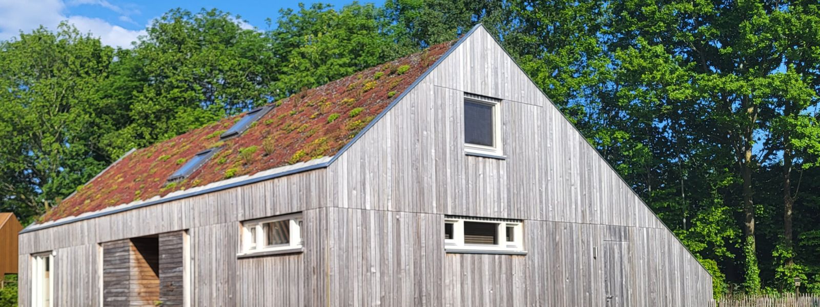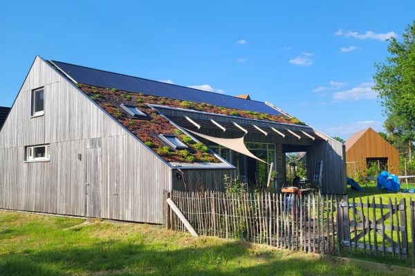 Het Natuurinclusief bouwen komt steeds vaker in de media naar voren, i.v.m. de stikstofproblematiek. Natuurinclusief betekent dat je rekening houdt met de natuur en de omgeving en de natuur de ruimte geeft. Met het sedum dak brengen we groen aan en via een sedum dak kan het water langzaam weglopen, zodat er geen wateroverlast ontstaat. Daarnaast zijn we aan het kijken naar de mogelijkheden voor wateropslag vanaf het dak(om de tuin mee te besproeien en voor B-water). Het sedum dak zorgt daarnaast voor verkoeling in de zomer en isolatie in de winter.