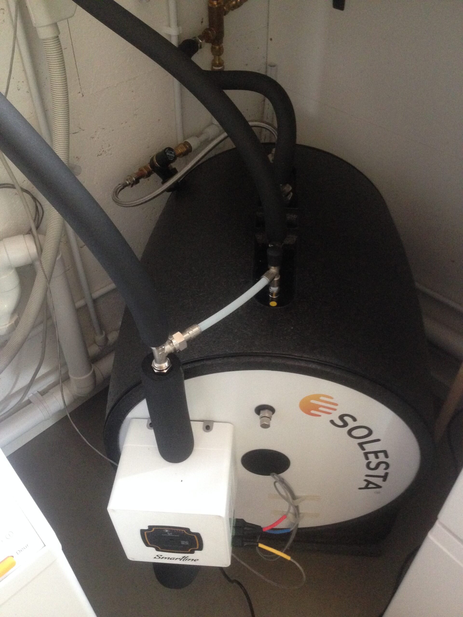 Zonneboiler; 25 heatpipes en buffervat van 100 liter; terugloopsysteem i.p.v. drukgevuld.
