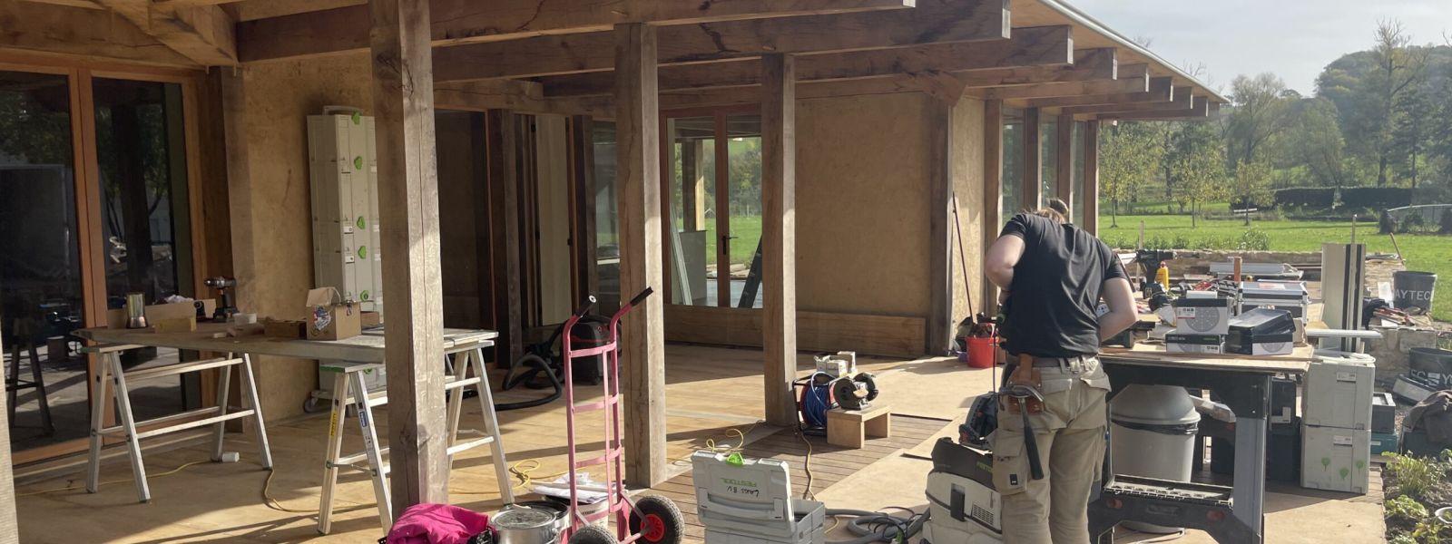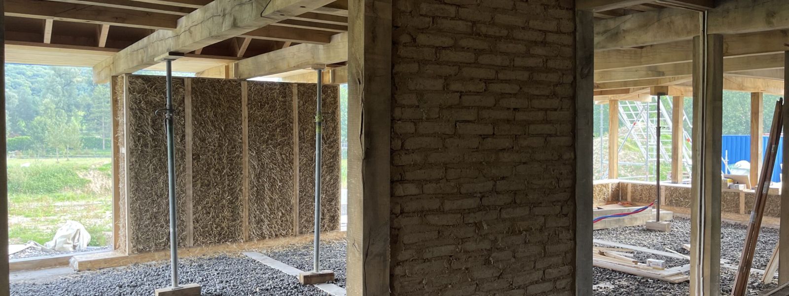 Na jarenlang bezig te zijn geweest met MVO (Maatschappelijk Verantwoord Ondernemen), heeft Paul zijn keuze hiervoor doorgezet in het dagelijkse leven. De keuze om duurzaam en circulair ons nieuwe huis te bouwen is dan ook een vanzelfsprekende keuze geweest, temeer daar de zonen van Lieve helemaal thuis zijn in het bouwen met ecologische bouwmaterialen.