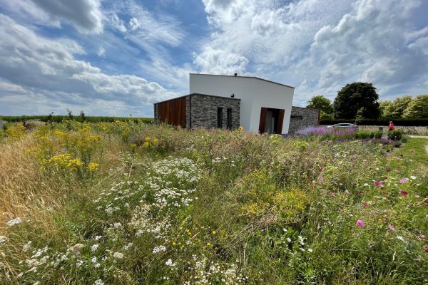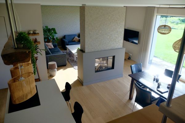 We zijn er half juni 2022 gaan wonen en hebben gelijk een hele lange en hete zomer achter de rug. Het streven was: geen airco en zo weinig mogelijk installaties. Dit is goed bevallen, dankzij screens en rolluiken is de temperatuur niet boven de 24 graden gekomen! Perfect dus, helemaal naar wens. Nu is het half oktober en we hebben nog geen verwarming aan gezet; we laten de zon binnen als het mogelijk is en schermen hem af als het nodig is. De goede isolatie en het superdichte huis doen hun werk.