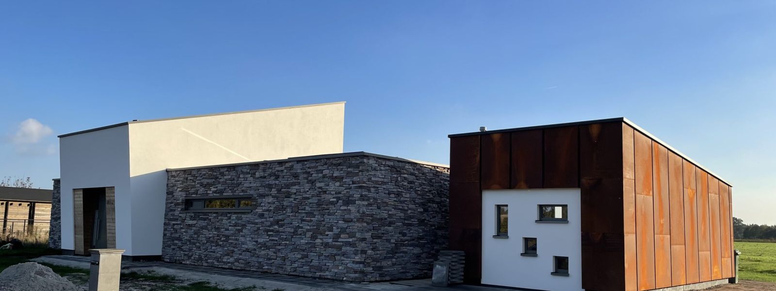Vrijstaande nieuwbouwwoning gebouwd met houtskeletbouw.
